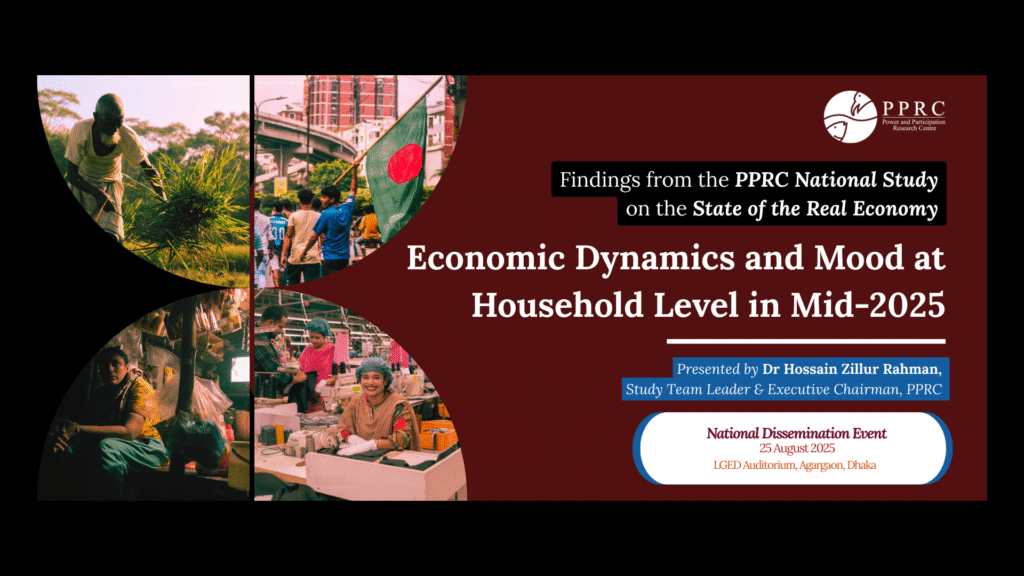PPRC has released findings from its nationwide State of the Real Economy survey, capturing household realities one year after the July 2024 Uprising. The study reveals rising poverty and new vulnerabilities, alongside resilience and aspirations shaping Bangladesh’s economic transition. Read more for key highlights, policy messages, the full report, media coverage, and event resources.